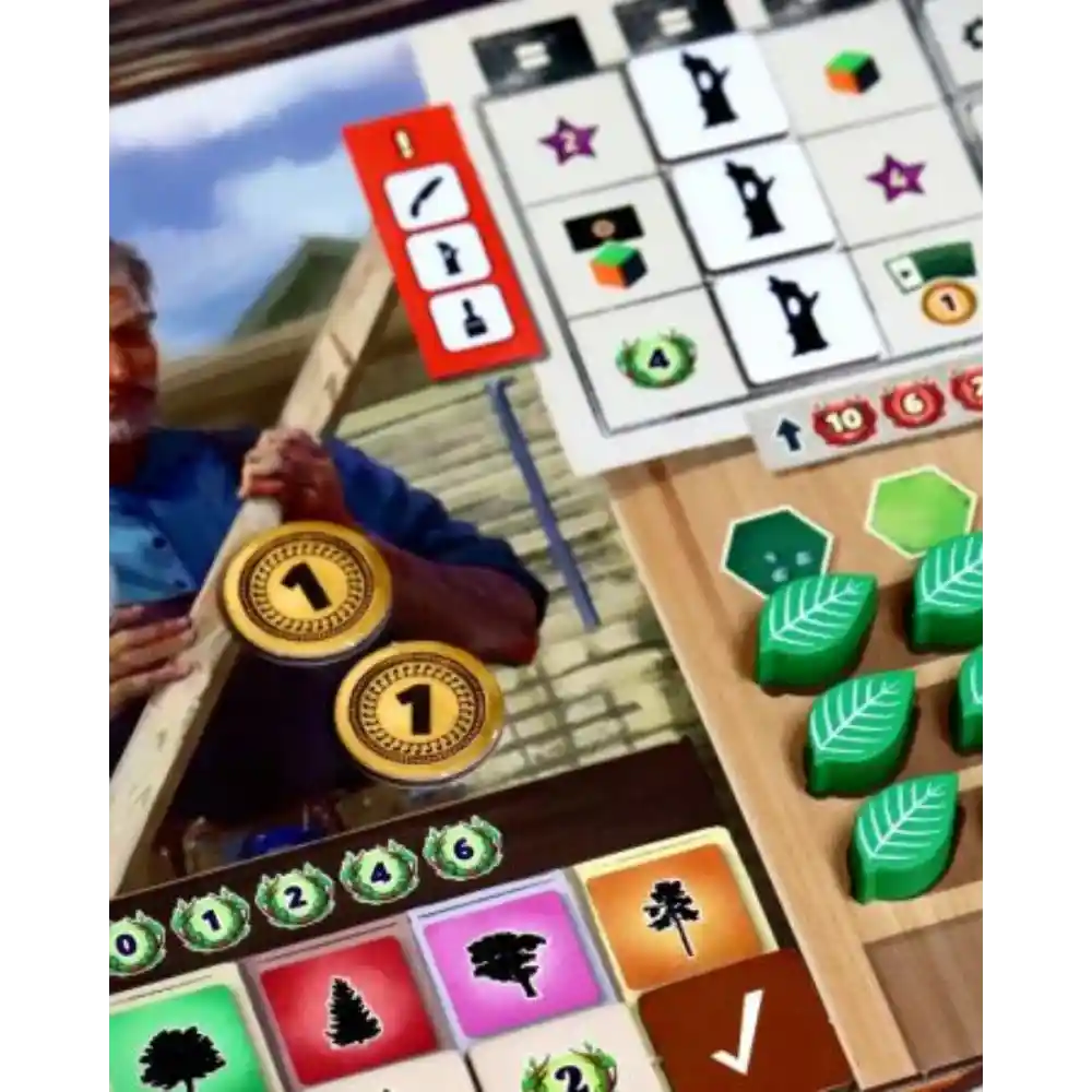 Dit strategische eurospel werkt met een dubbel werkersysteem. Je bestuurt zowel een harvester als een manager, elk met hun eigen rol. De harvester trekt het bos in om bomen te kappen, jonge aanplant te verzorgen en infrastructuur te bouwen. De manager regelt de verwerking van hout, het vervullen van contracten en het efficiënt inzetten van middelen. Je verdeelt actiepunten tussen beide rollen en probeert zo het maximale uit elke ronde te halen.