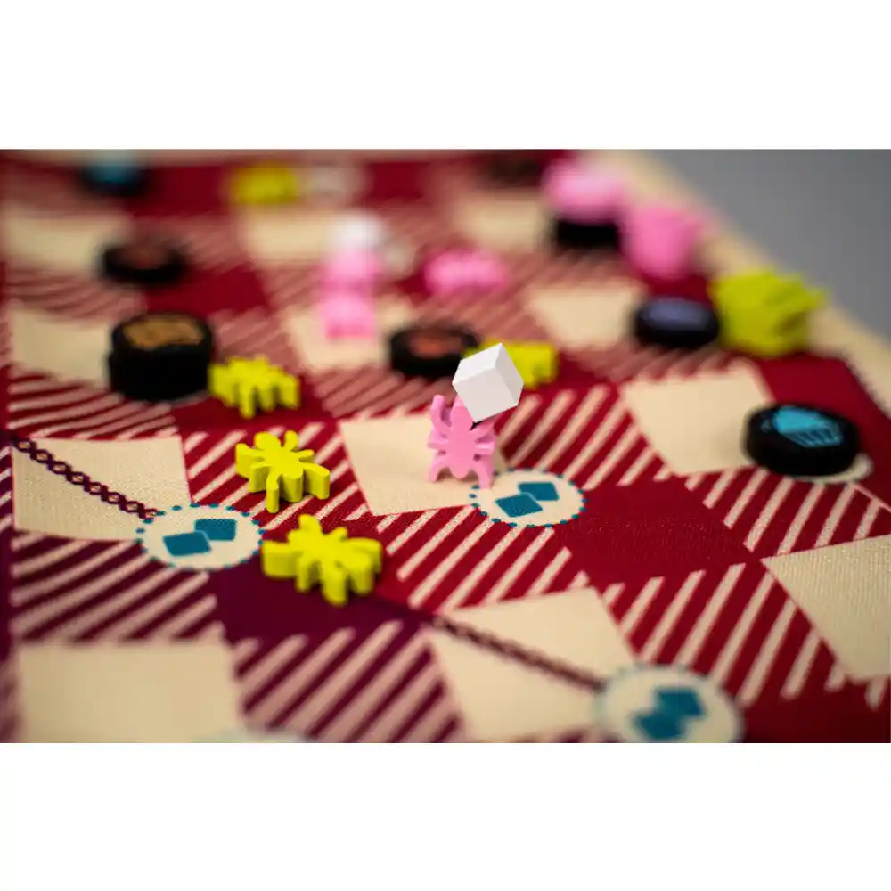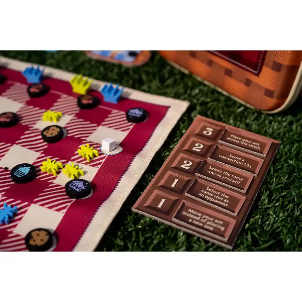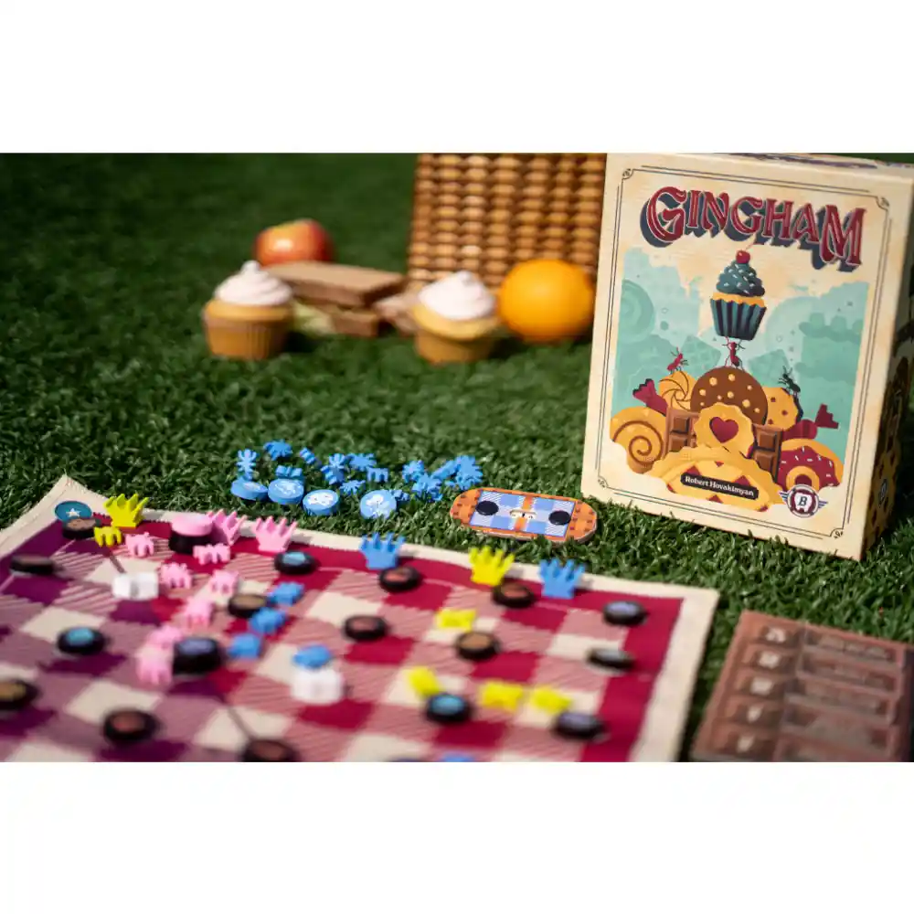 In Gingham leiden spelers rivaliserende mierenkolonies over een kleurrijk picknickkleed vol zoetigheden. Door mieren op de beste plek te plaatsen en routes te bouwen, verbind je lekkernijen en leg je waardevolle voorraden aan. Elke zet draait om positionering en timing, want alleen wie zijn netwerk goed uitbouwt, scoort maximaal.