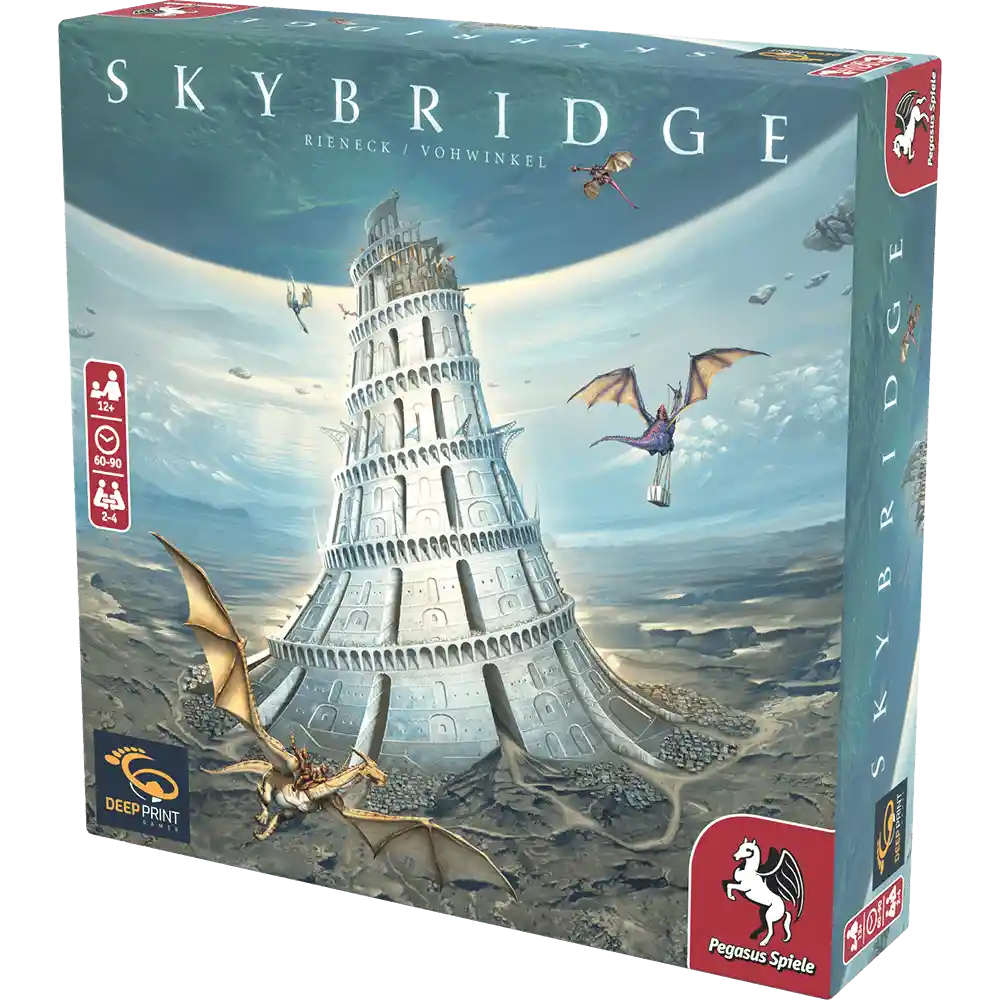 In Skybridge, each player leads their faction through the turbulent era of bridge construction. Equipped with a unique ability, their goal is clear: When the Skybridge is complete, they want to have amassed more power than anyone else. Using a clever and dynamic card activation system, they’ll gather resources for the construction, expand their military might, and seek the favor of the Godhs. Who will claim victory for their faction?