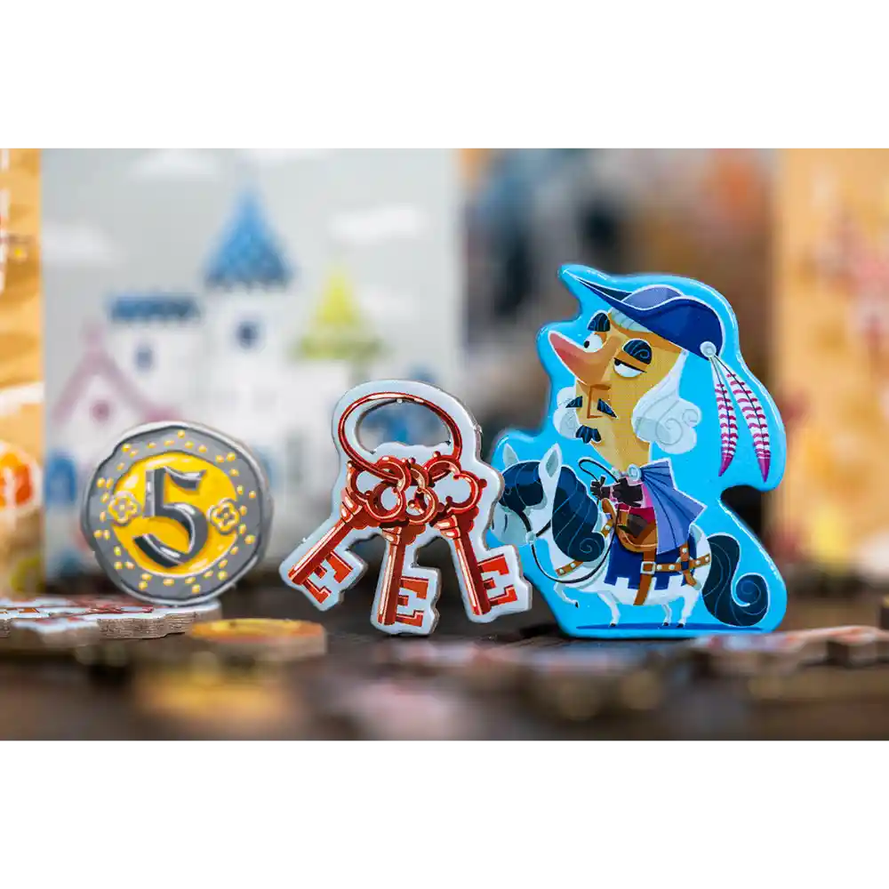 Met munten werf je inwoners uit twee delen van de stad – de nederige onderstad en de deftige bovenstad – om zo een tableau van 3×3 kaarten te vormen. Elk personage dat je toevoegt, brengt directe effecten en andere combinaties tot leven, waardoor elke zet telt.