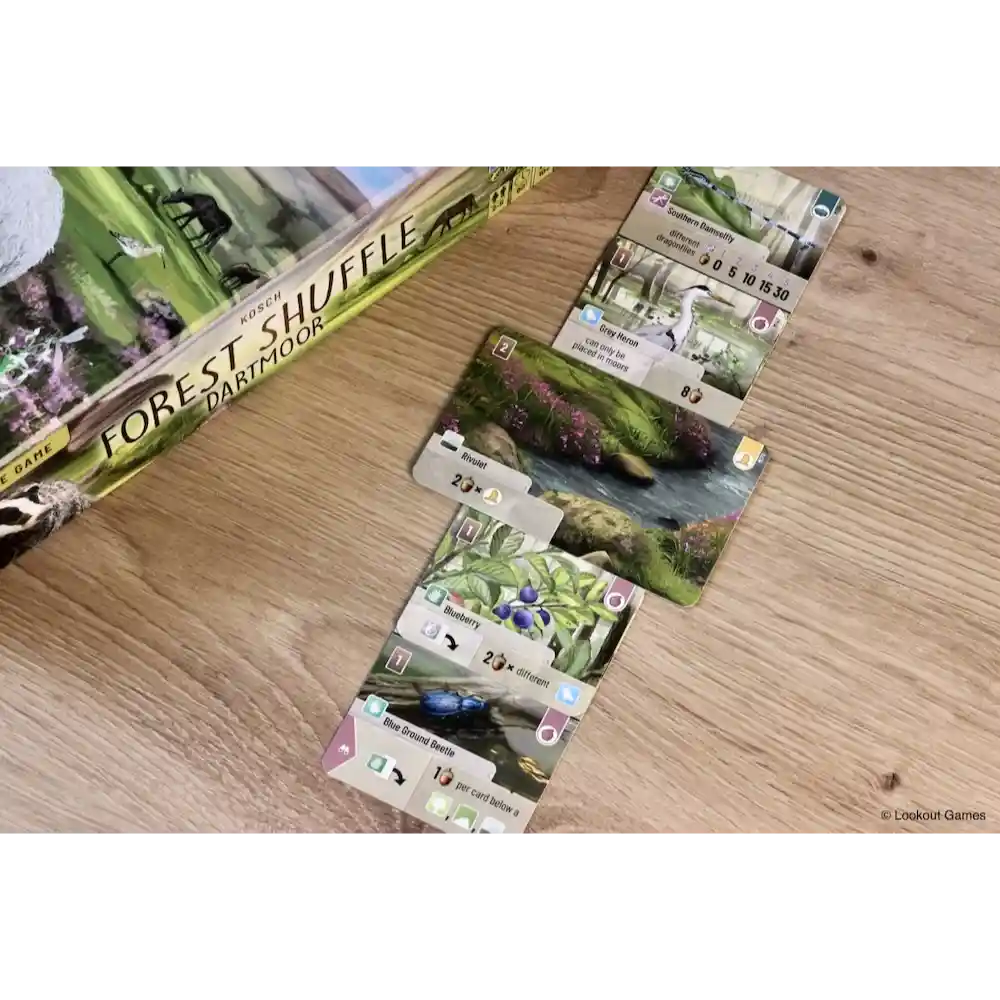 In Forest Shuffle: Dartmoor bouw je, net als in het originele Forest Shuffle, aan de meest waardevolle en evenwichtige leefomgeving door bomen, struiken en diersoorten te combineren. Deze keer speel je echter in een heel nieuw landschap vol unieke dieren, planten en terreinsoorten die de natuur tot leven brengen.