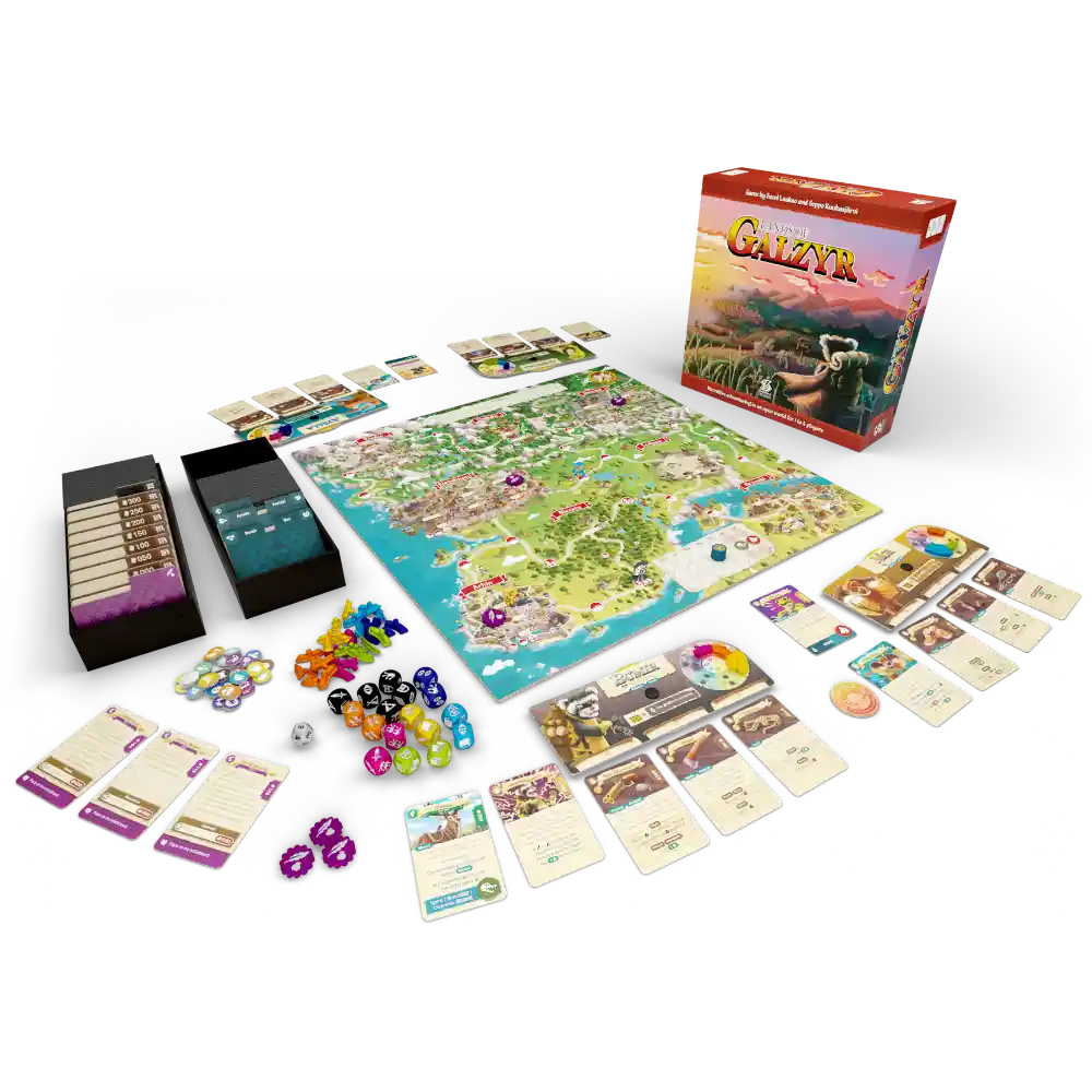 Lands of Galzyr is an adventure board game set in an open, story-rich world. Acquire prestige as a cunning and ambitious adventurer by exploring the lands and by taking on challenging quests. Your actions have long-lasting consequences in the evolving and persistent game world. Your decisions affect not only the current game, but the following games as well.
