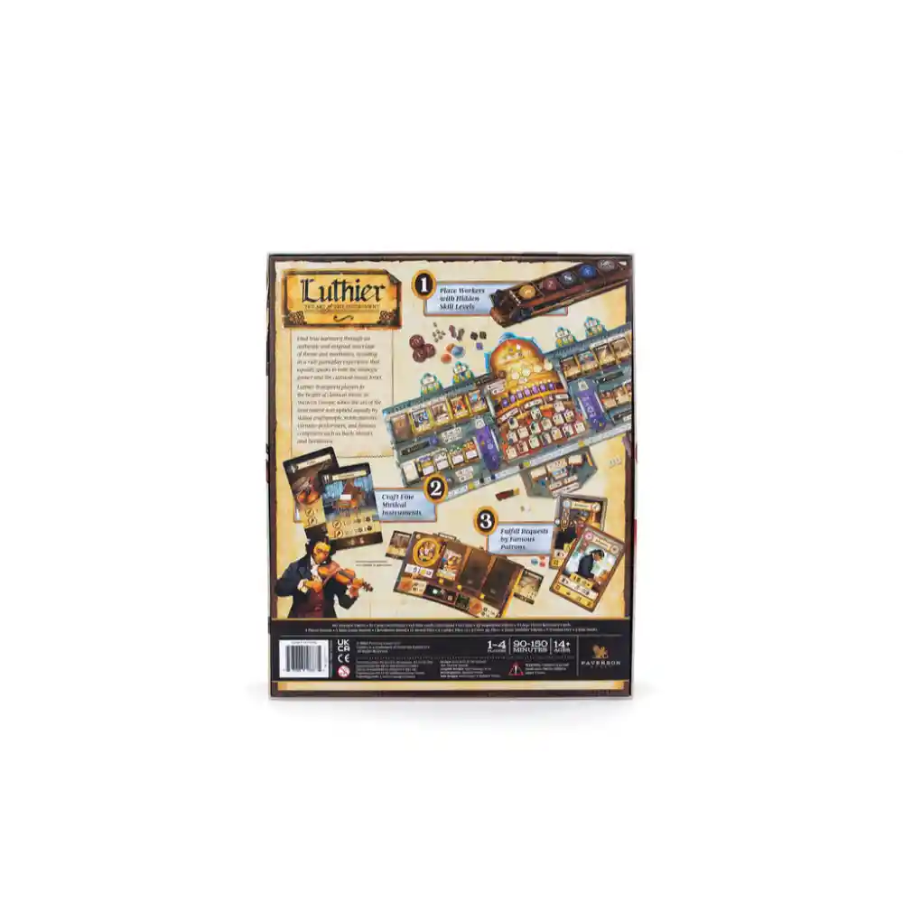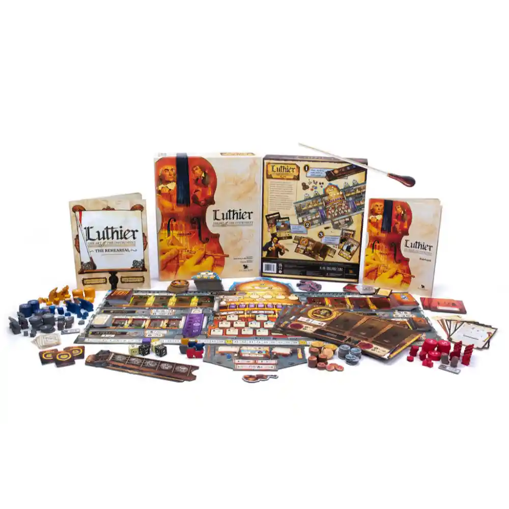 Door een unieke combinatie van verborgen biedingen en worker placement beheer je je grondstoffen, train je leerlingen en breid je je werkplaats uit. Elke keuze bepaalt jouw reputatie als ambachtsman: richt je je op optredens, verfijnde instrumenten of het opleiden van de volgende generatie meesters? Luthier is een harmonieuze mix van strategie en thema — een eerbetoon aan de kunst van muziek en vakmanschap.