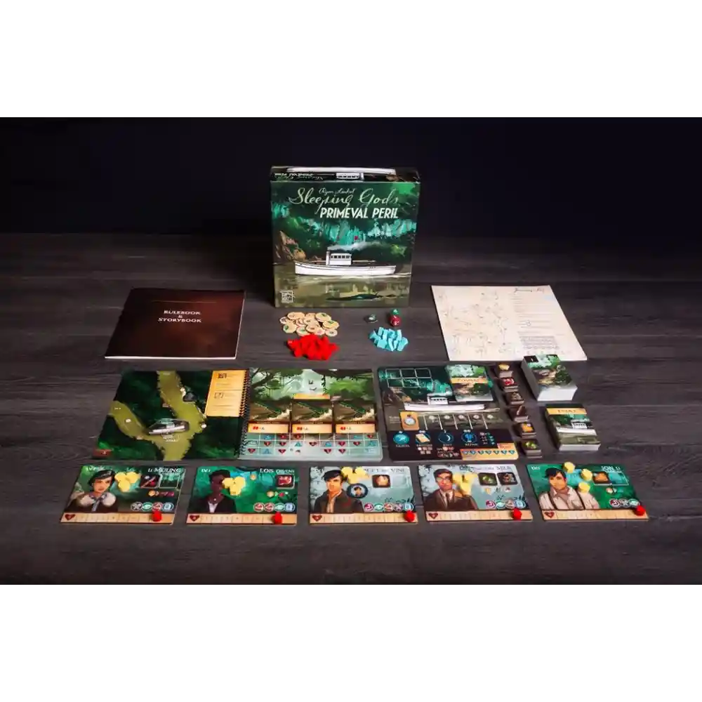 In Sleeping Gods: Primeval Peril speel je als kapitein Sofi Odessa en haar bemanning, verdwaald in een onbekende wereld in het jaar 1929. Je bevindt je aan boord van het stoomschip Manticore en vaart over een gevaarlijke rivier, omringd door dichte jungle. Je verkent eilanden, ontmoet vreemde bewoners en vecht tegen gevaarlijke wezens. Tijdens het avontuur verzamel je totems van de goden. Als je hen weet te wekken, vind je misschien een weg naar huis. Deze editie bevat nieuwe verhalen, kaarten en een gestroomlijnd spelverloop.