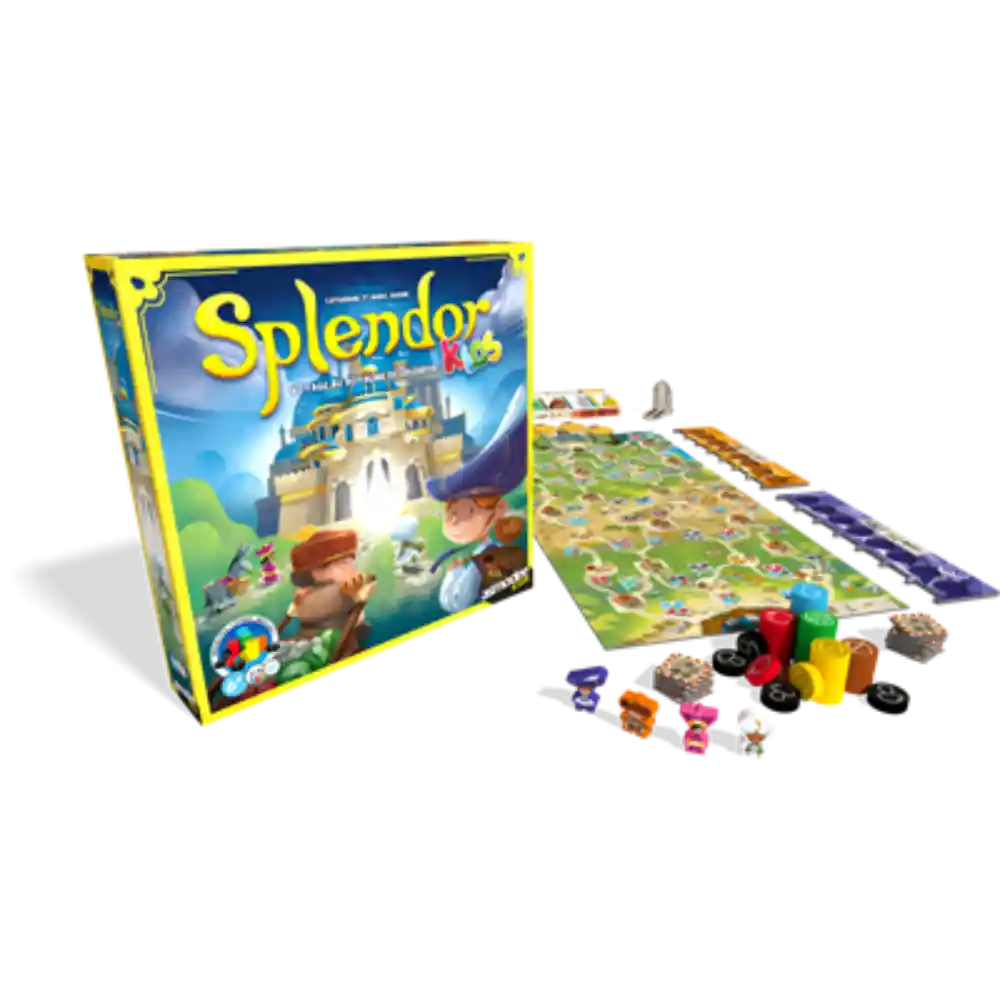 In Splendor Kids trek je met je pony’s door het koninkrijk om voedsel te brengen naar dorpen, steden en uiteindelijk het paleis zelf. Onderweg ontmoet je bijzondere bewoners, verzamel je grondstoffen en plan je zorgvuldig je volgende stap om op tijd bij de poort te zijn.