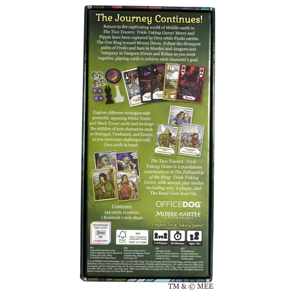The Journey Continues! Return to the captivating world of Middle-earth in The Lord of the Rings: The Two Towers™ Trick-Taking Game! This is a standalone continuation to The Lord of the Rings: The Two Towers™ Trick-Taking Game, with several play modes including solo, 2-player, and The Road Goes Ever On.