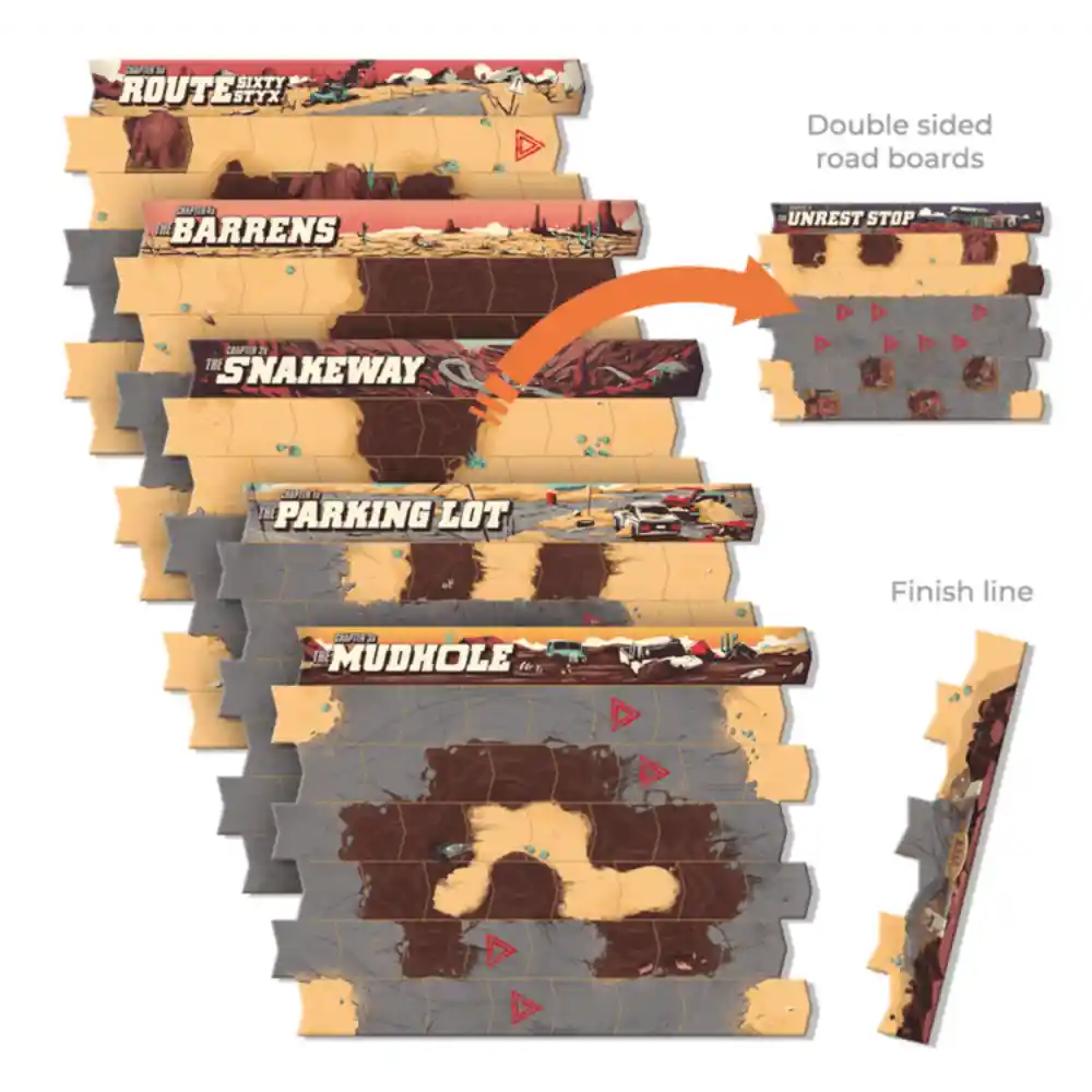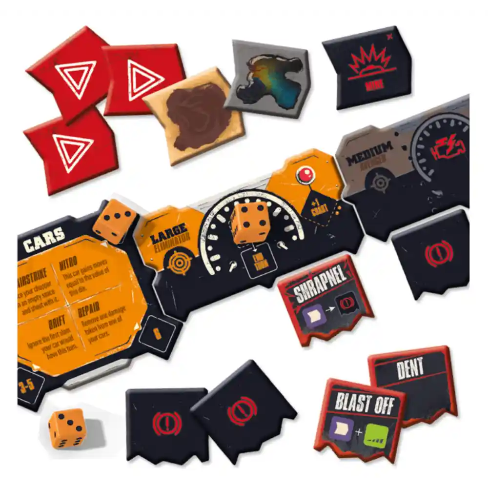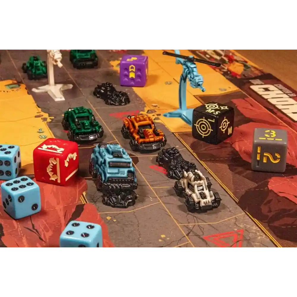 Deze deluxe editie tilt de chaos naar een hoger niveau met gedetailleerde voertuigminiaturen, stevige dobbelstenen en het iconische oneindige wegdek dat elke race onvoorspelbaar maakt. Elke bocht kan fataal zijn, elke actie kan de doorslag geven. Ondertussen moet je niet alleen rekening houden met het landschap, maar ook met de vuile trucs van je tegenstanders.